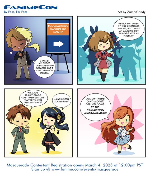 Masquerade Contestant Registration opens TODAY March 4, 2023 at 12:00pm PST Sign up @ fani.mobi/3KndIuQ #Masquerade #FanimeCon #Cosplay