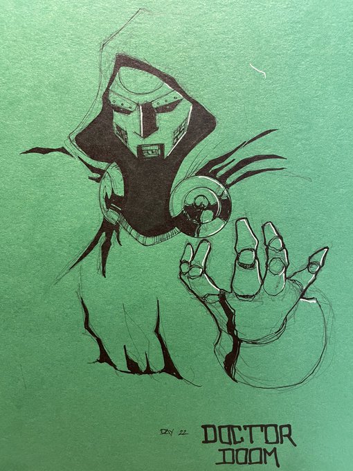 Day 22 of Inktober. Doctor Doom! . #art #fanart #marvel #marvelcomics #comics #fantastic4 #doctordoom #inktober #dailysketch #ArtistOnTwitter