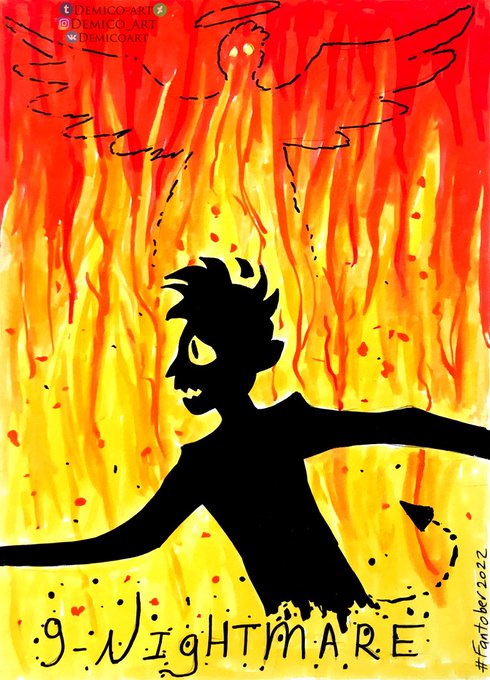 Day 9 - “Nightmare” When the angel’s bookshop burned. #Inktober2022 #Fantober2022 #GoodOmens #ineffablehusbands