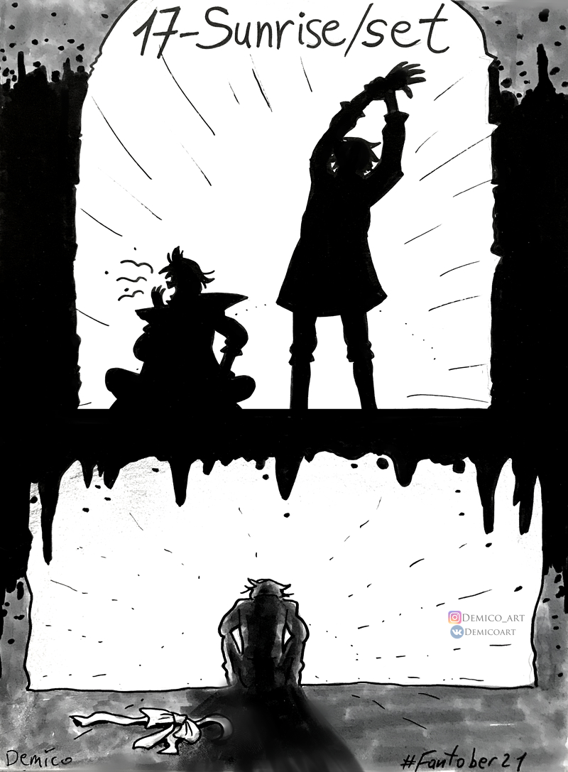 Day 17 - “Sunrise/set” The above image is from the manga, and the lower image is from imagination, because this is where this story is going I guess. #Fantober21 #Inktober2021 #Inktober #VanitasnoCarte #ヴァニタスの手記 #ヴァニタス