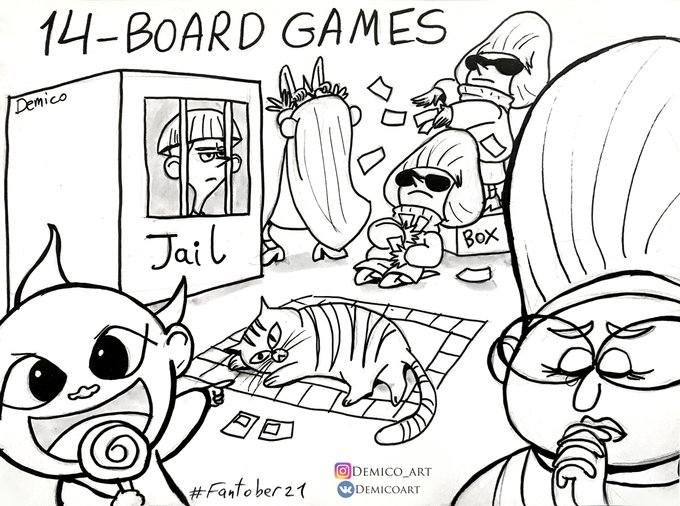 Day 14 - "Board Games" Decided to draw one of those "draw the squad" memes. #Fantober21 #Inktober2021 #Inktober #TheWilloughbys