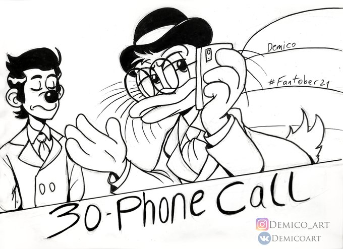 Day 30 - “Phone Call” #Fantober21 #Inktober2021 #Inktober #DisneyDuckComics #JohnDRockerduck #Rockerduck #Jeeves