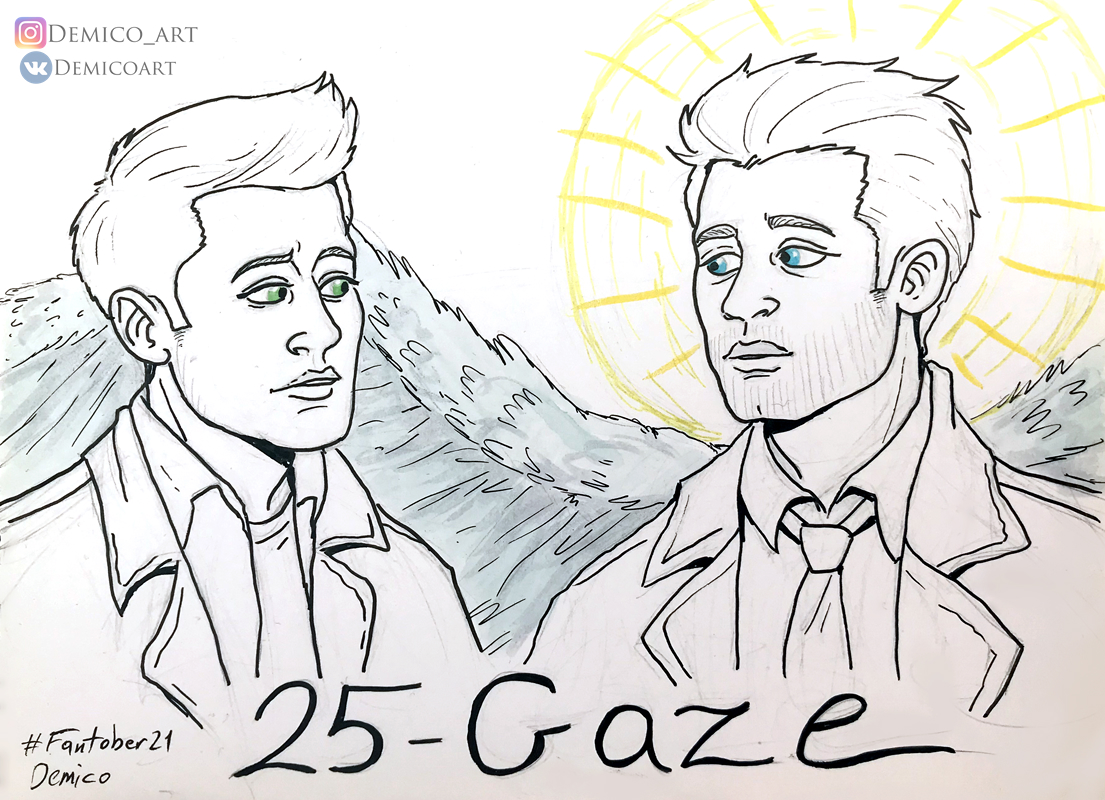 Day 25 - “Gaze” My first attempt at drawing for “Supernatural” #fantober21 #inktober2021 #Deancas #DeanWinchester #destiel #Castiel #Supernatural #inktober