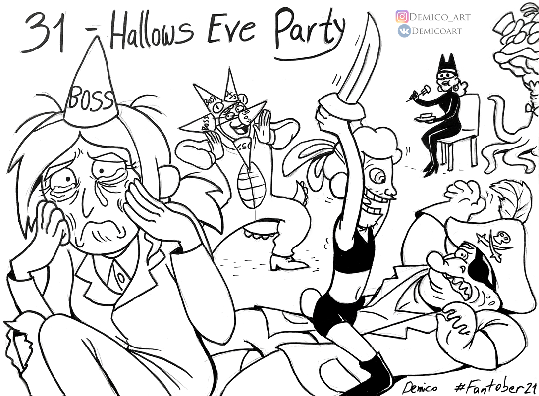 Day 31 - “Hallows Eve Party” Decided to draw another “draw the squad" meme. #Fantober21 #Inktober2021 #Inktober #InsideJob #ReaganRidley