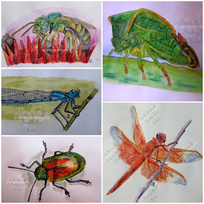 It's late in August but to Thank you @ksneathart, @caseybella3 and @artyreg77 for hosting #Summerbuggin here are the 5 little friends together, I made for this art challenge. #kleineKunstklasse #artwork #illustration #FarbenFürsLeben #ArtistOnTwitter #wildlife #watercolor