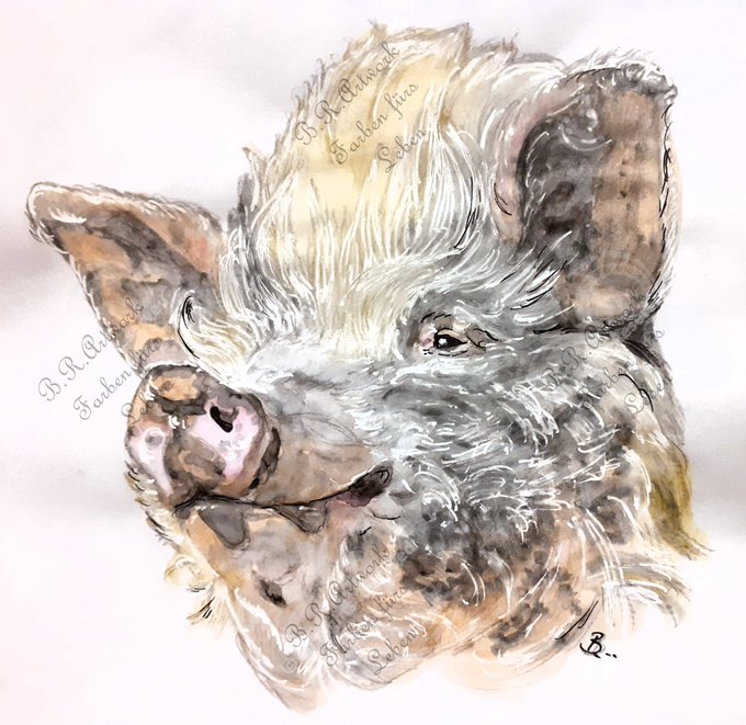 Allen einen schönen Abend und später eine gute gesegnete Nacht. Schwein, Faber Castell Aquarelle Pen, Fineliner und weißer Gelstift. @sznecke @akalprem_kaur @getigART @HM100965 #kleineKunstklasse #artwork #illustration #FarbenFürsLeben #ArtistOnTwitter #watercolor