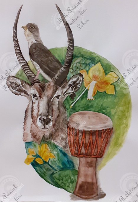 Allen einen schönen Abend und später eine gute gesegnete Nacht. Aftika Grüße an @sznecke @akalprem_kaur @getigART @HM100965 @DieSchatzhasen @muschelrauschen und alle, die es gerade brauchen. #kleineKunstklasse #artwork #illustration #watercolor #FarbenFürsLeben #ArtistOnTwitter