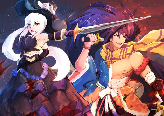 Finally allowed to post these! Pieces I drew for @FW_Alberia! These were originally transparent but unfortunately they resized very poorly lol #DragaliaLost #ドラガリ #FarewellAlberia