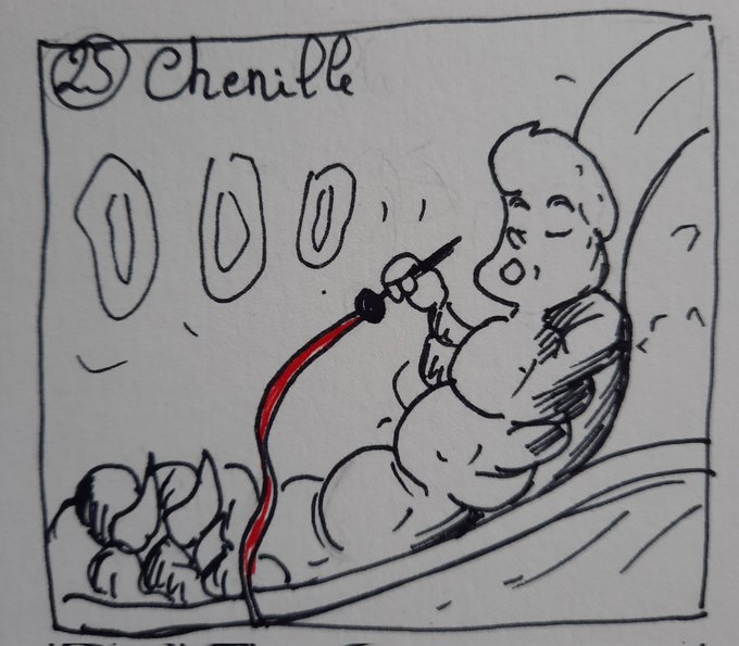 Jour 25 - Chenille "J’ai dix centimètre et j’estime que c’est une bonne taille, sans aucun doute !" #inktober #inktober2022 #fastobeurre #artober