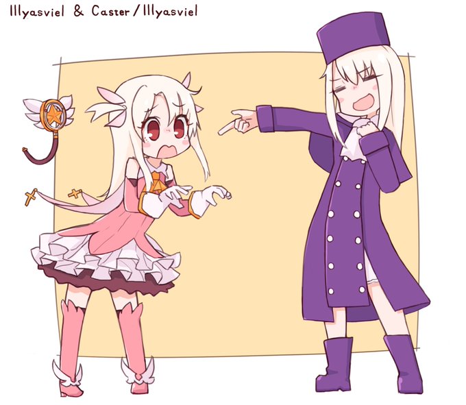 「さあ行きなさいキャスター!まずは年増どもを◼️◼️して、その恥ずかしいコスプレで士郎をロリコン沼に引きずり込むのよ!」 「えっちょっと何言ってるの!?っていうかさらっと酷いこと言ったよね!?」 #fate_sn × #prisma_illya × #FGO