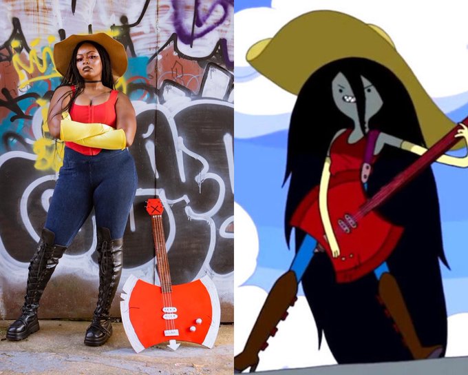 #31DaysofTheGreatCosplay DAY 12: Since today is #FathersDay & it’s also still #PrideMonth, this is the perfect time to show off all 3 times I’ve cosplayed my favorite #bisexual w/ daddy issues: #MarcelinetheVampireQueen 🎸🍟 #Marceline #AdventureTimeCosplay #BlackCosplayerHere