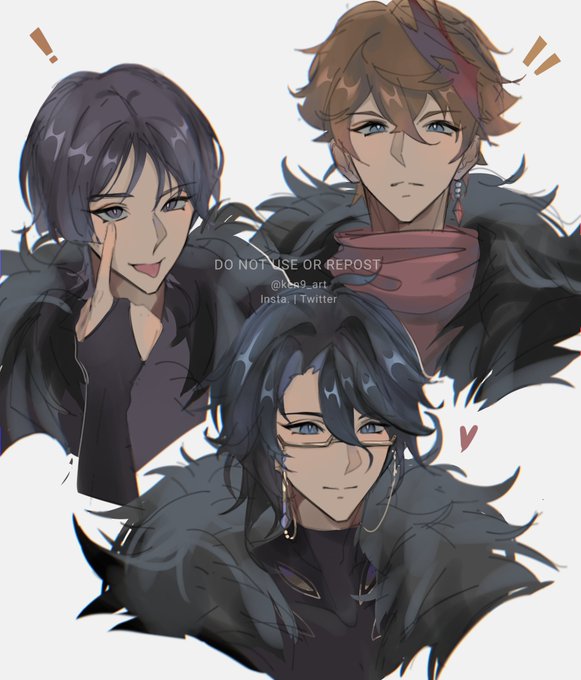 Commission - a series of works with thoughtful Harbingers #GenshinImpact #fanart #Fatui #Fatuiharbingers #Pierro #Pantalone #Tartaglia #Arlecchino