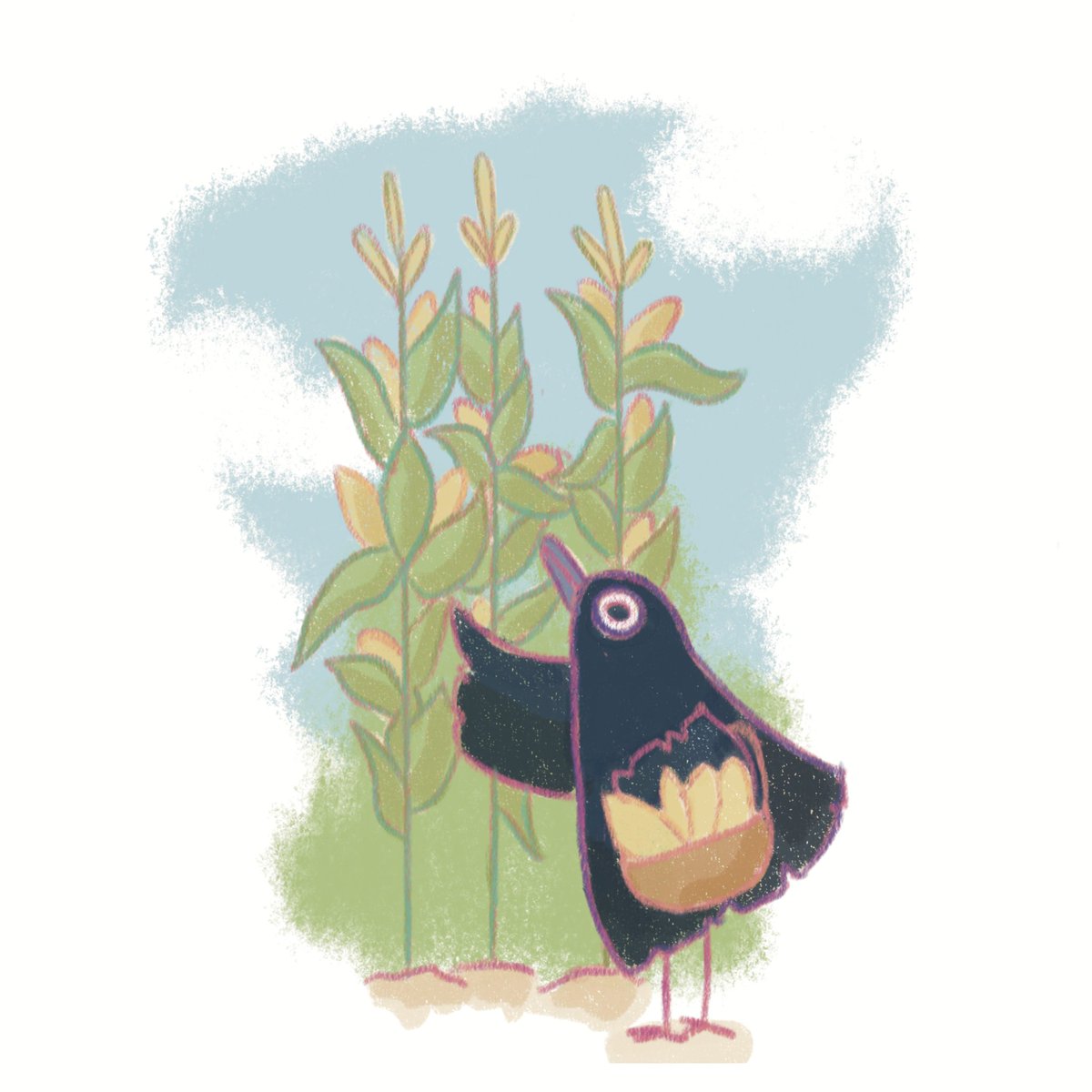 Had the idea to draw this little crow corn farmer! Stop scaring these guys away and just let them grow their own corn! #art #ArtistOnTwitter #FeatheredFebruary