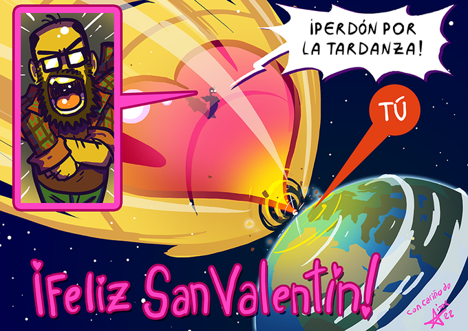 Como digo en el dibujo, ¡PERDÓN POR LA TARDANZA! Pero mover esto por el cosmos cuesta un huevo #FelizSanValentin