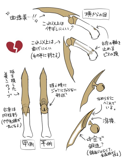 ガーネットの義指の詳細デザインを考えました。 (台座の形状に変更点あります。球体関節がきちんと動くようにしました) 彼は色んなデザインの義指を持っているので一概にこれでなきゃいけない訳ではないんですが、とりあえず1番ベーシックなのがコレという事で…ご査収下さい。 #Felllust twitter.com/kinotura12/sta…