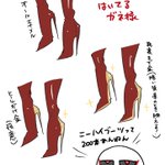 ガネ様はオシャレさんなので、どんなブーツを履かせてもいいとは思うのですが 最近のガーネットはこういうデザインのニーハイブーツを好んで履いております。 ヒール違いで少なくとも3本は持ってます。 #Felllust twitter.com/cero_09051/sta…