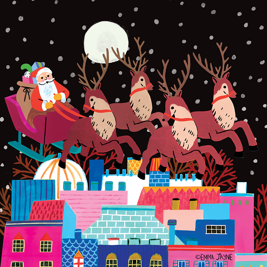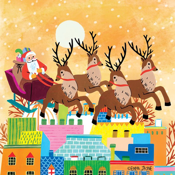 Santa and reindeer on Christmas Eve. Do you prefer the peach or black background? #Christmas2022 #santa #illustration #WorkinProgress #festive #kidlitartist #Illustrator