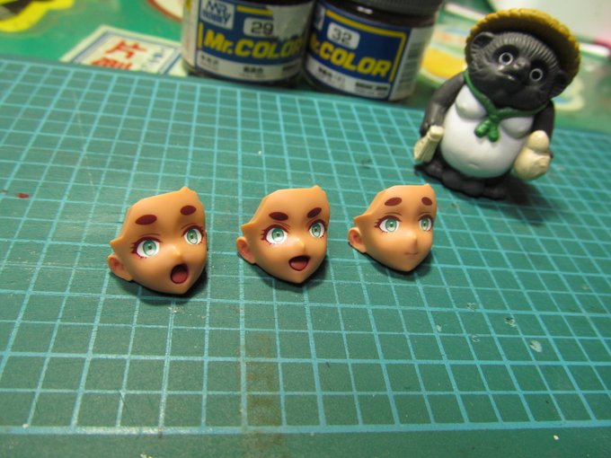 スレッタちゃんプラモ とりあえず頭部だけ組んでみたわー。 髪は艦底色で陰影を付けてみました。 あと個人的にお顔のデカールはBとCは逆にした方が 表情豊かになるような気がするー。 #FigureriseStandard #スレッタマーキュリー #スレッタちゃん #ガンプラ