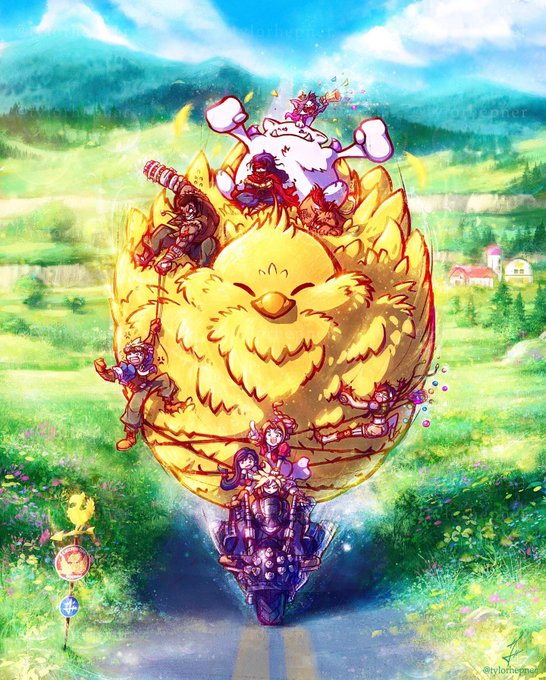 Fat Chocobo Painting (Final Fantasy VII)✨ The gang captures the Fat Chocobo✨ ✨Can’t wait to draw more FFVII to celebrate Ever Crisis and Rebirth after my FFXVI series ✨ #FF7EverCrisis #FinalFantasyVII #digitalart #fanart #FFVIIRemake