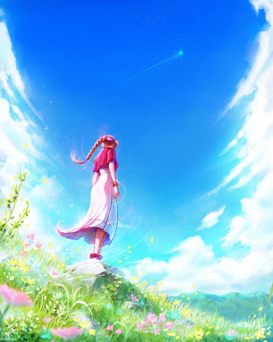 Aerith Painting (Final Fantasy VII)✨ One of my favorite Aerith pieces I’ve done. A lot of Ghibli influence in my landscapes✨ #Aerith #FinalFantasyVII #digitalart