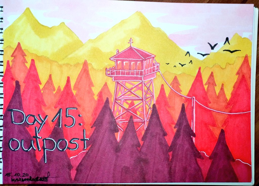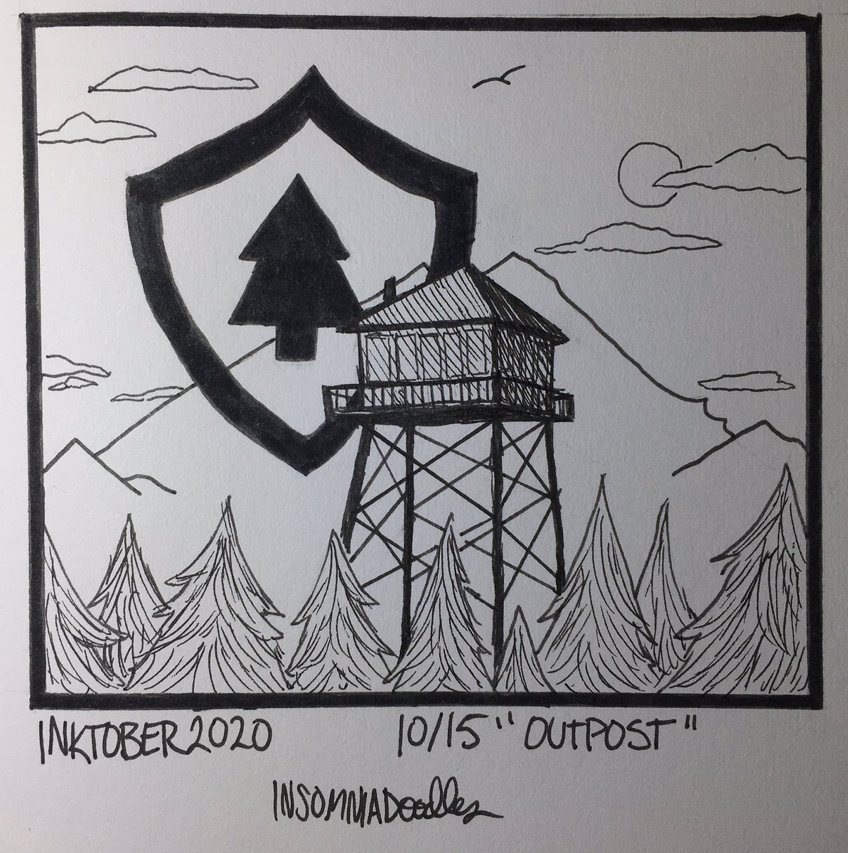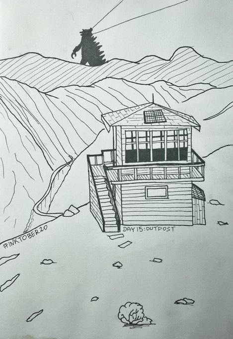 Inktober 2020 Day 15 - Outpost This one was inspired by the game Firewatch. #inktober2020 #inktoberday15 #Kirby #Firewatch