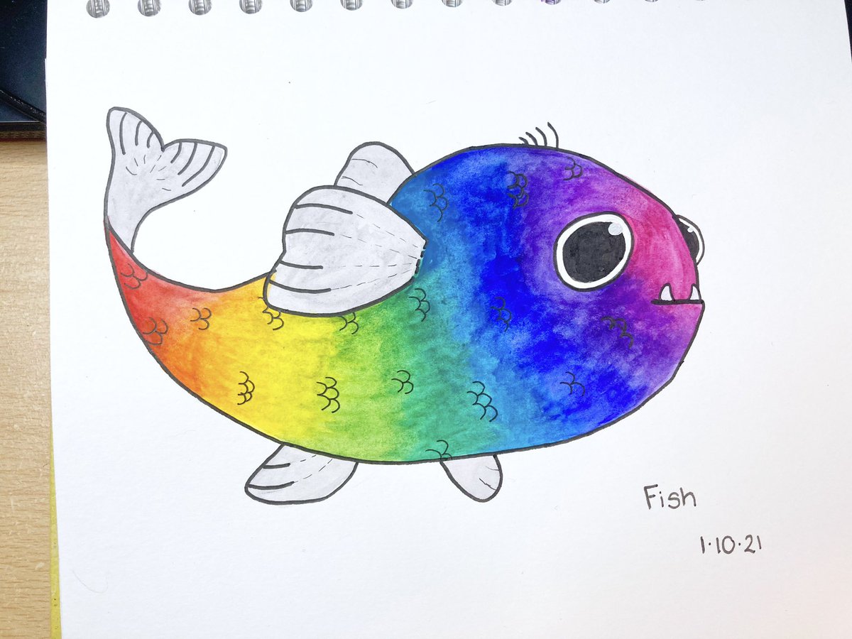 A fish that’s not a balloon for #FishloonDay #animaloonies @Animaloonies #fish #rainbow #traditionalartist #watercolour #watercolor
