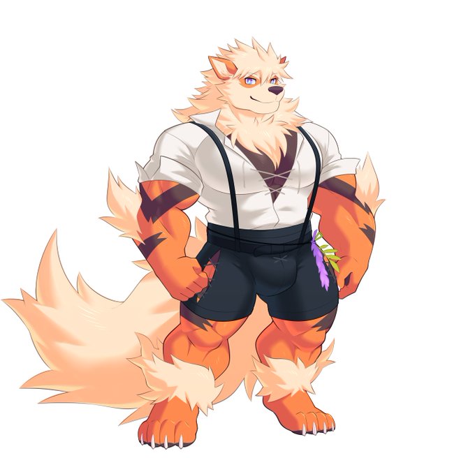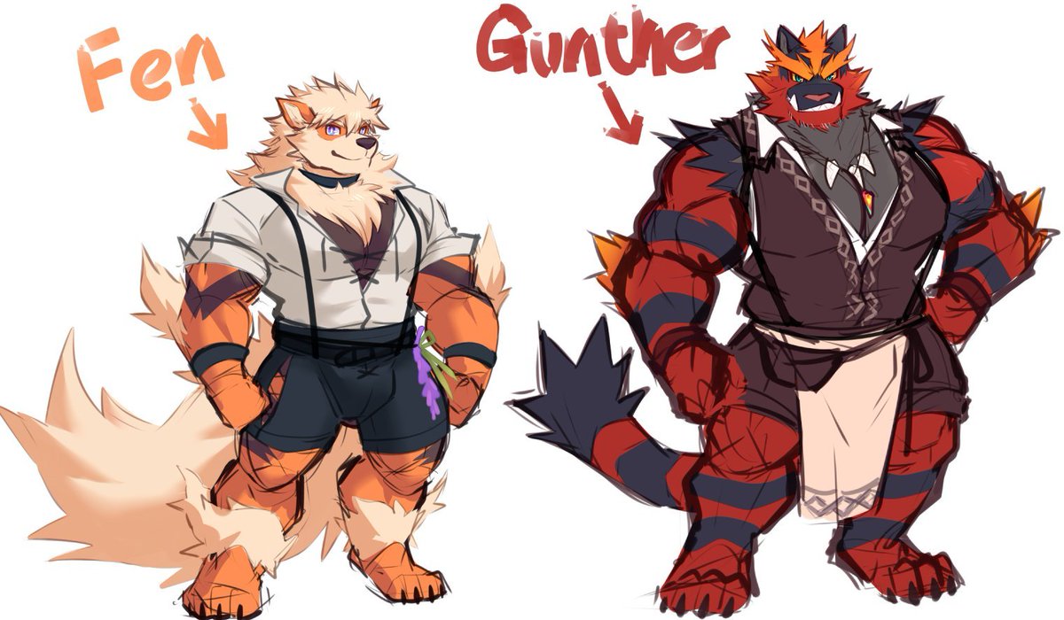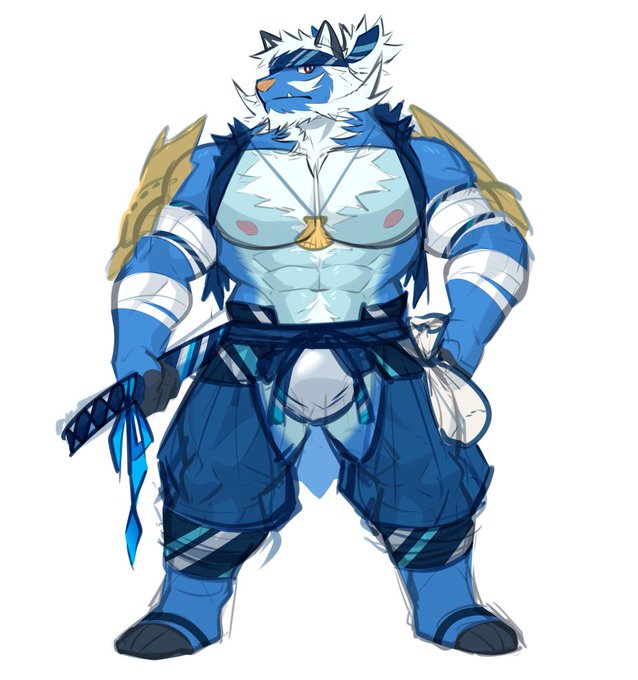 WIP design for #FlamingFlagon, owner of the local bathhouse~ Have not settle on his name and full outfit yet, he will have more cloth (probably)💦