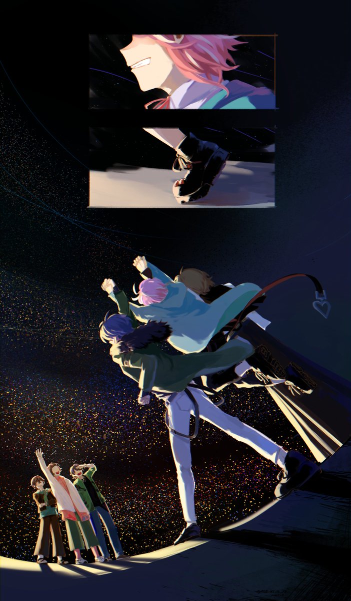 #FlingPosseに王冠を #CrownForFP #ポッセは絶対優勝する 投票終わった後に急場凌ぎで描いたやつだけど…!! お祝い絵用意して待ってるから、2週間後にとびきりの笑顔を見せてね…!! どうか彼等の旅路をこれからも見られますように!