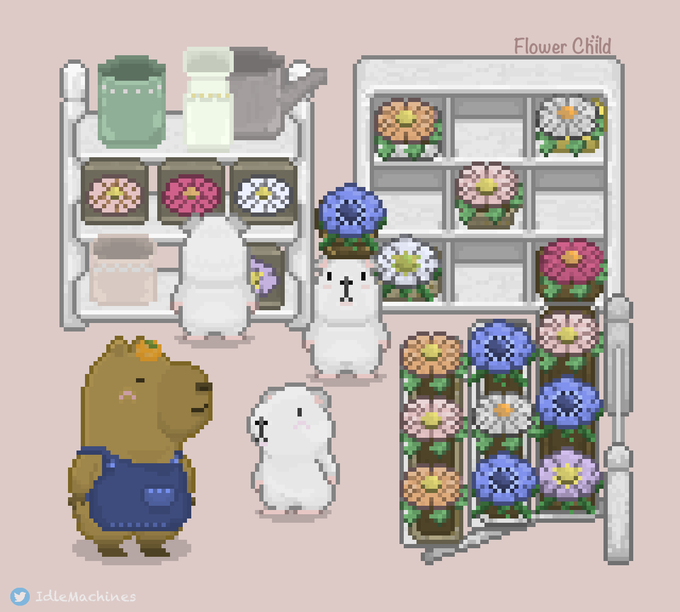 Which one would you #guinea pick? #FlowerChild #Pixelart #pixelartwork #IndieGameDev #ドット絵 #像素畫 #puipui