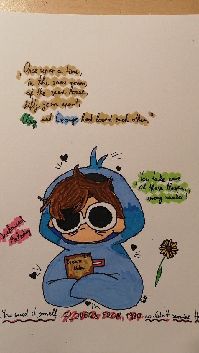 Once upon a time In the same room Of the same house 50 years apart Clay and George Davidson had loved each other. #ff1970 #Flowersfrom1970 #dreamfanart #georgenotfoundfanart #dnffanart (the flowers are messy to show how unimportant they are compered to his hand)