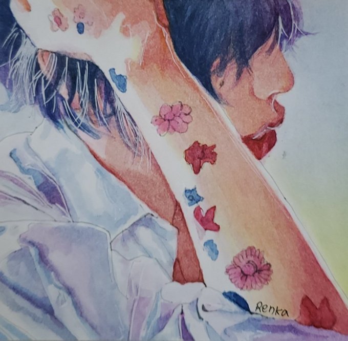 雪降ってあたふたしてたら花壁さんのお祝い(MV公開日)きちゃってた💦 勿論間に合いませんでしたともっ! (リリース日には間に合わせたいっ!) 安定の過去絵(それもお婿に出した花壁さん)ですがあげてもいい?(笑) #米津玄師 #Flowerwall #水彩画 #模写 #過去絵でごめーんっ