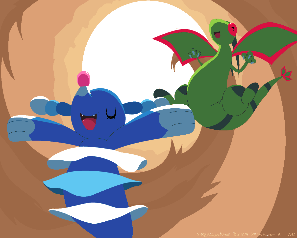Look! It’s Pokémon Trainer Wilbur and his Pokémon partner, Flygon singing a song together, how sweet! #wilbursootfanart #pokemon #flygon