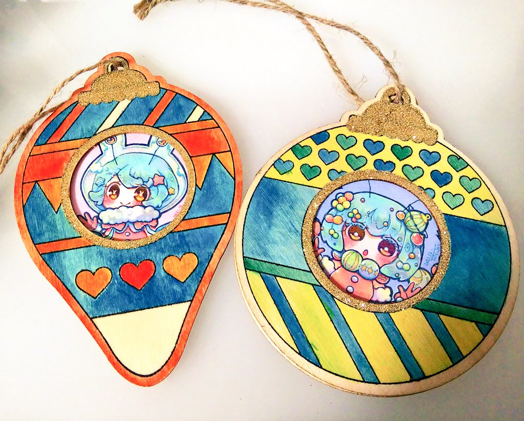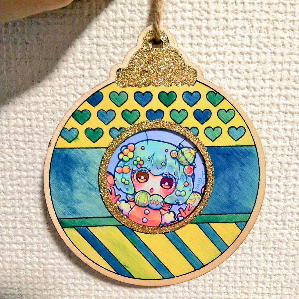 以前も作りましたが、フライングタイガーさんのオーナメント作りが楽しかったので、新たにまた2つ作りました! なんとなく宇宙船っぽいイメージで描きました💫 #イラスト #オーナメント #展示会 #flyingtiger #HollyJollyXmas