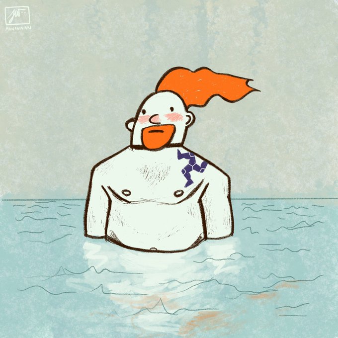 Day two of #folktober! Today’s prompt was Manannán, who is a warrior and king of the otherworld in Irish mythology - also known as ‘son of the sea’. #Inktober #folktober2022