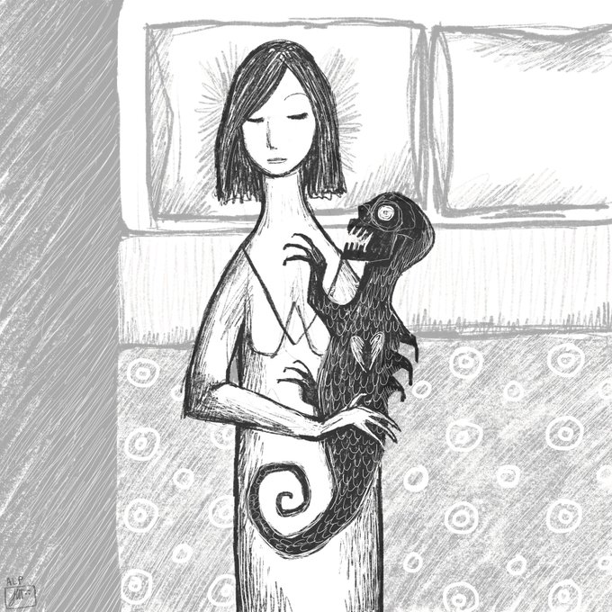 For day 3 of #folktober - I found a prompt list where today’s was ‘alp’, a creature from German folklore that sits on chests and causes nightmares. Learning lots of new stuff this year! #folktober2022 #inktober