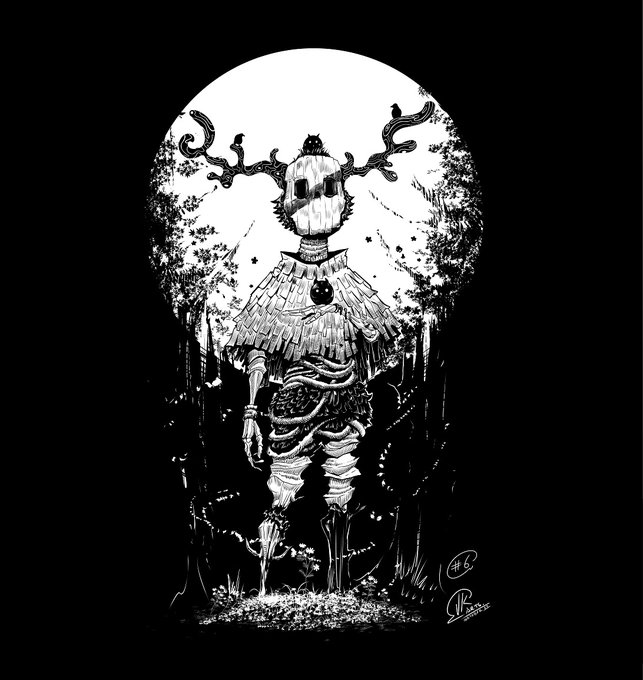 MAGICTOBER | DAY 23 • LESHY 🌳 O Leshy é um espírito florestal da mitologia eslava, que protege os animais selvagens e as florestas. 🌿 #drawtober #drawtoberday23 #Leshy #Slavic #SlavicMythology #ForestSpirit #magic #illustration #artwork #inktober #riscamelon