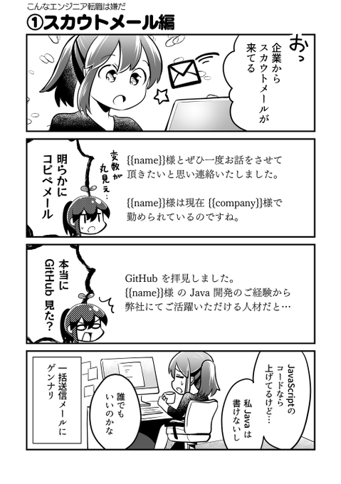 【漫画】ITエンジニア転職あるある(1/2) ▼ #Forkwell さんとのコラボ漫画『わかばちゃんと学ぶ賢いキャリアアップ方法』公開中! bit.ly/3N5T8Nb #PR #わかばちゃんと学ぶ