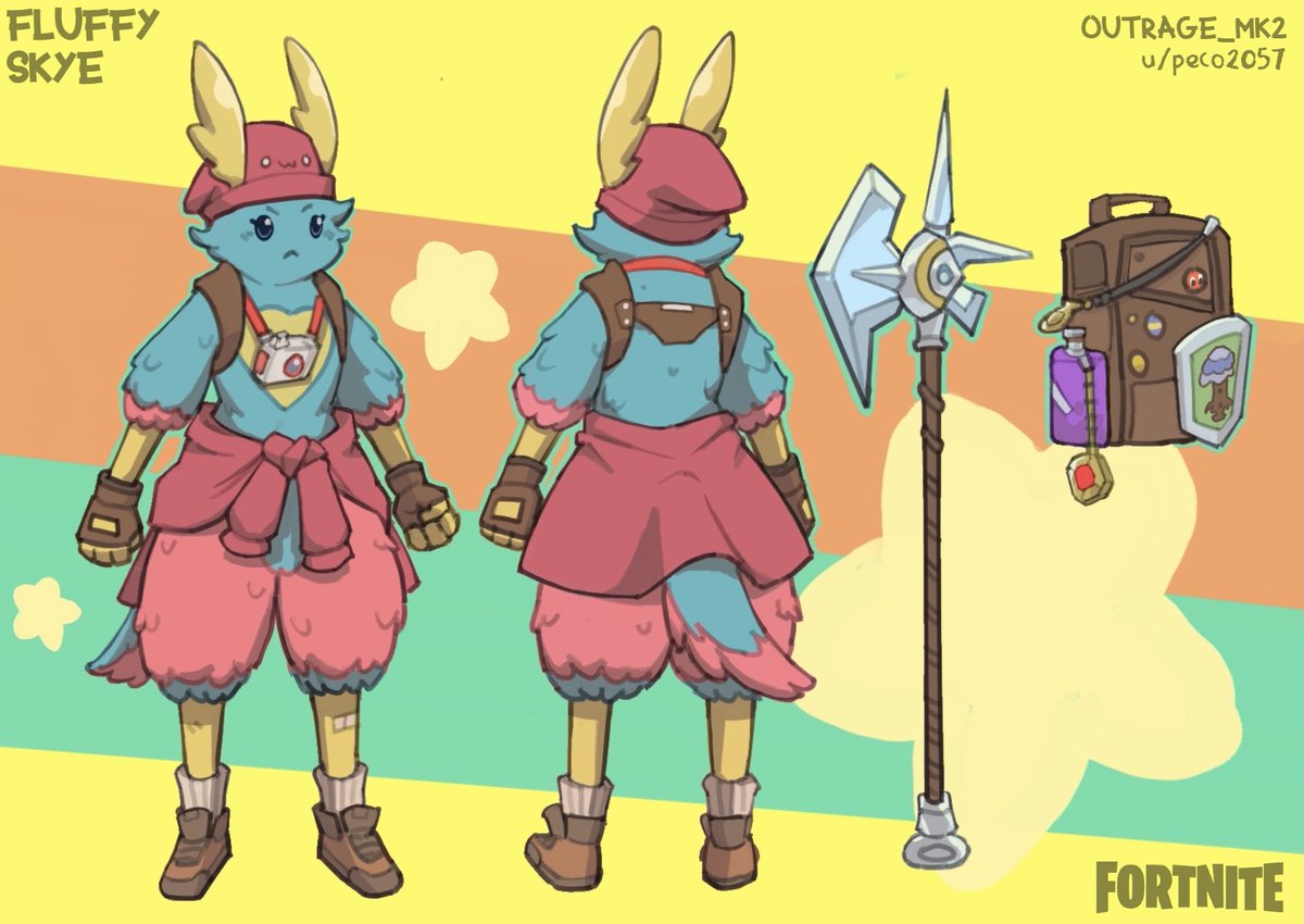 "Note to self; don't experiment with those sparkly shards." Meet FLUFFY SKYE and HUMAN GUFF! They are a pair of adventurers that hail from a parallel timeline! #FortniteFracture #FortniteConcept #FortniteChapter4 #FortniteArt #FortniteParadise