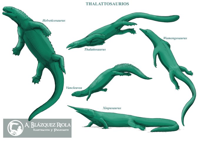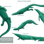 Bocetos de varios géneros de Talatosaurios, los llamados lagartos marinos del Triásico. Unos bichos fascinantes la verdad. Muy útil las actuales iguanas marinas como referencia. 🦎 #FossilDay #paleoart