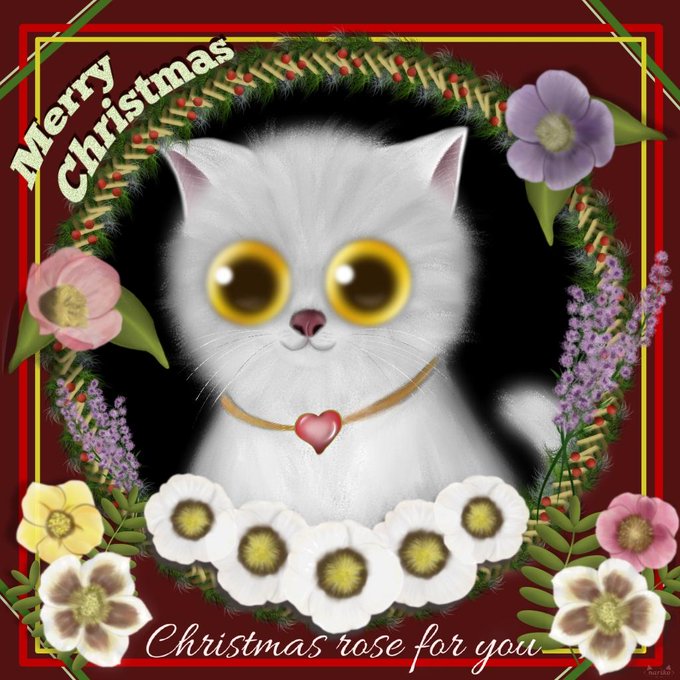 🐈「Christmas Card🎄」ちょっと早いけどクリスマスカードを💕宜しければご自由にお使い下さいませ🤗💖🐈 #FreeDownload #クリスマスカード #クリスマスローズ #花とネコさん #catillust #ネコ #ねこ #cat #ねこの絵 #イラスト #Illust #ilovecats #猫絵 #infinitePainter #ibisPaint