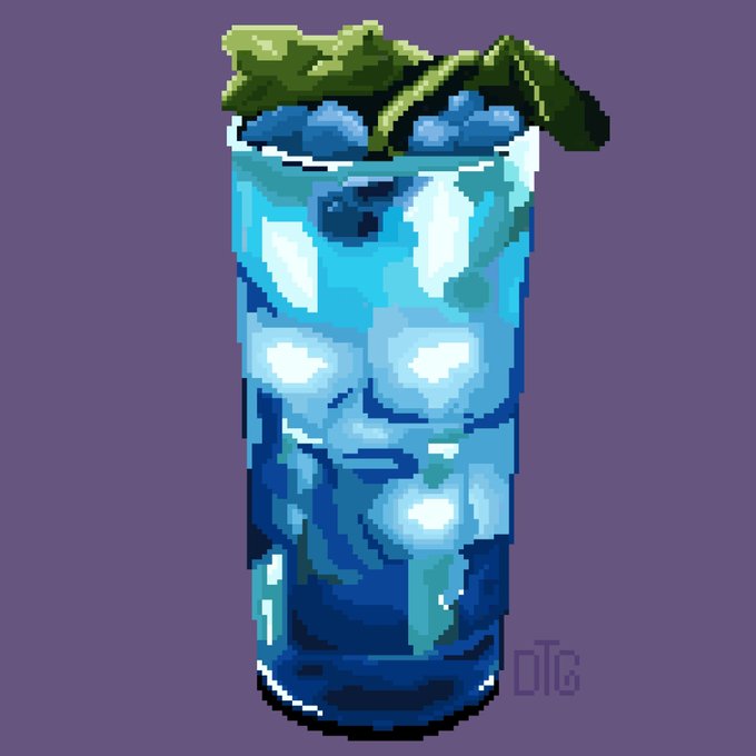 A #fresh Cocktail with mint and blueberries for @Pixel_Dailies. 🍸 #pixel_dailies #pixelart #ドット絵 #Food #art #pixelartist