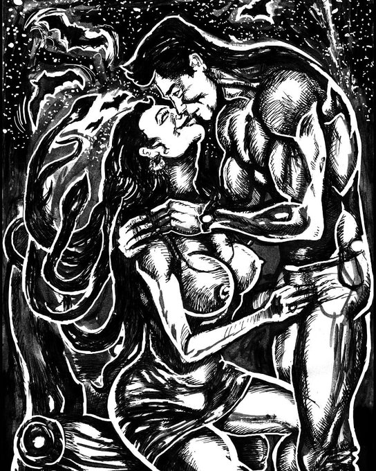Forces of the Night 🌙⭐️🌹🎶🐍🌹🦇 #art #artistsontwitter #drawings #inktober #SURREALISM #loveeternal #romance101 #FridayMotivation