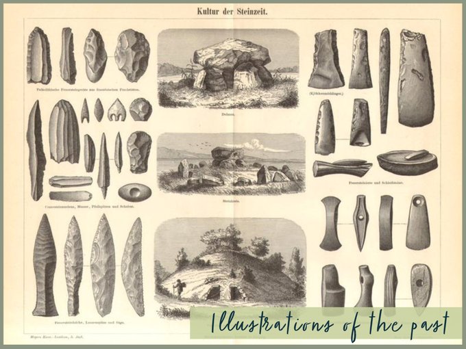 Illustrations of the 19th century! Stone Age chart🤩[Kultur der Steinzeit, Meyers Konversations-Lexikon, 1896] #archaeologicalillustration #illustrationsofthepast #archaeology #FridayMotivation #Science #ancient #ArtofLegends