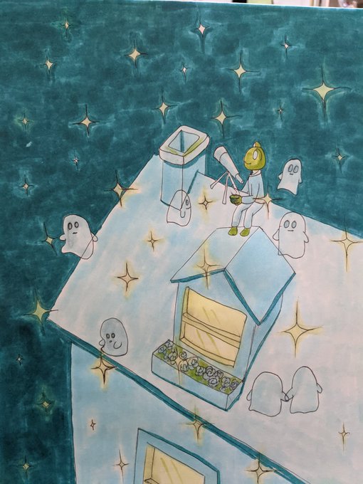 Inktober Day 13 - Roof 🐸✨ #inktober2021 #Inktober #drawing #FrogNation #frog #ghost #copics #star