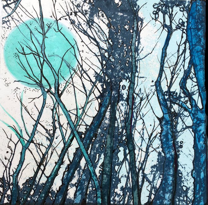 Did you see the Strawberry Moon yesterday a stunning full moon rather like my collagraph print #StrawberryFullMoon #FullMoon #seascape #shoreline #sundayvibes #ArtistOnTwitter #artist #moonlight #sea