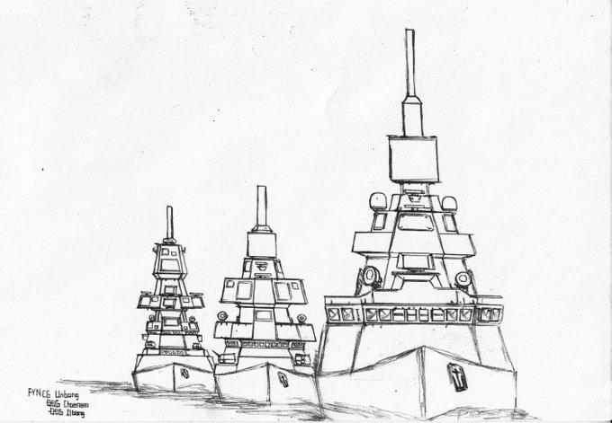#架空艦 #イラスト #Fupusang_Y 名称 暦然功臣(Ryogyon gongsin) 戦艦 所属 豊敷讃連邦海軍[FYN] 塗装 灰 主砲 32cm連装砲 2基 主砲 30cm連装砲 4基 副砲 57mm対舟艇連装速射砲 2基 対空 76.2mm単装高角砲 10基 機銃 12.7mm連装機関銃 6基