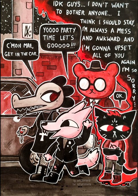 #Maetober2022 day 20: Gossip "We all have a dark past" 🍝🗑️ [#Maetober #nitw #nightinthewoods #drawtober #drawtober2022 #furry #furryart #furryfandom #furryartwork]
