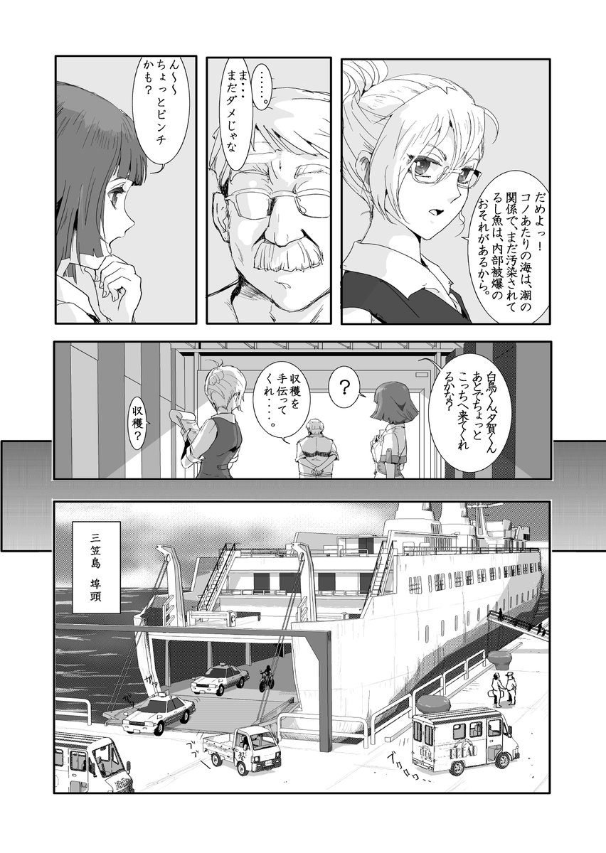 ☆#過去絵供養 2012年 311の後、日本版国際救助隊みたいなものを描いていたが、1話が終えたころ、コミスタで描いていたために途中でクリスタに道具を代えてから進んでないwバイクやフェリーや車は3D #FutureBirds