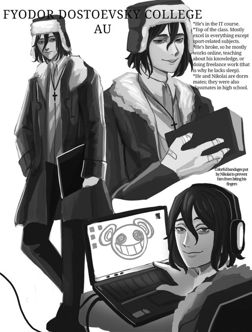 Fyodor dostoevsky College student AU! I'll do Nikolai next. #fyodordostoevsky #BSD #bsdfanart #bungoustraydogs