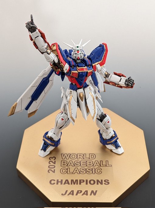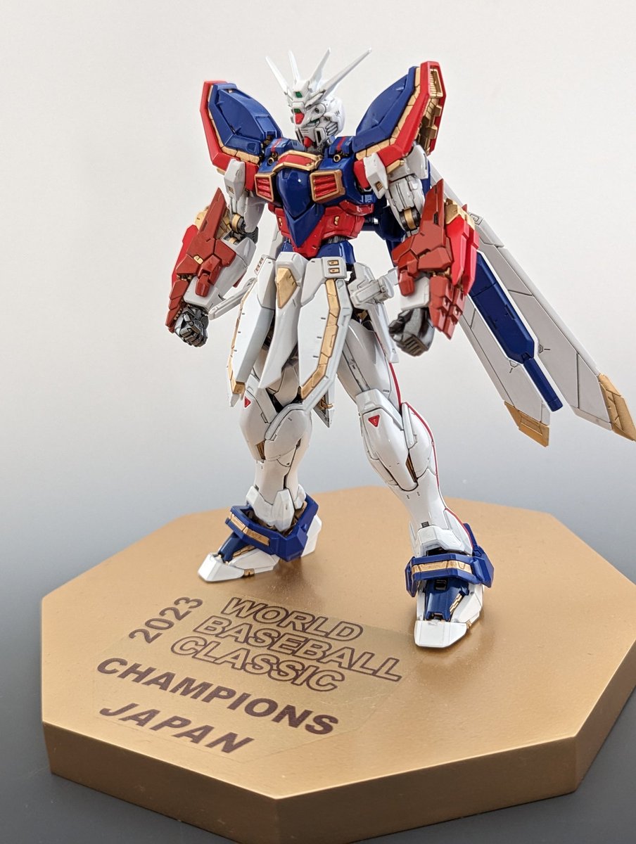 #アナタが頑張ったプラモ見せて 純金箔押しRGゴッドガンダム。 発売前の下準備から発売当日の慌ただしさ。 金箔工芸をはじめて最も短く熱い製作でした。(製作時間・約24h)#Gガンダム #金箔